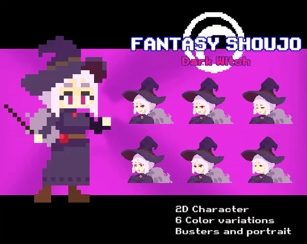 Hi guys, I'm back! Fourth character in the fantasy shoujo pack, Dark Witch , is now available! The pack comes with 1 character with more of 10 animations! as well as portraits with 6 different express...