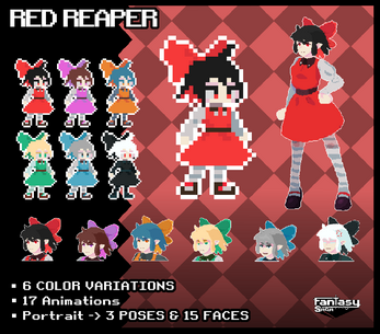 Fantasy Saga #1 - Red Reaper ( 2d Pixel Art Character + Bust for rpg and NV )